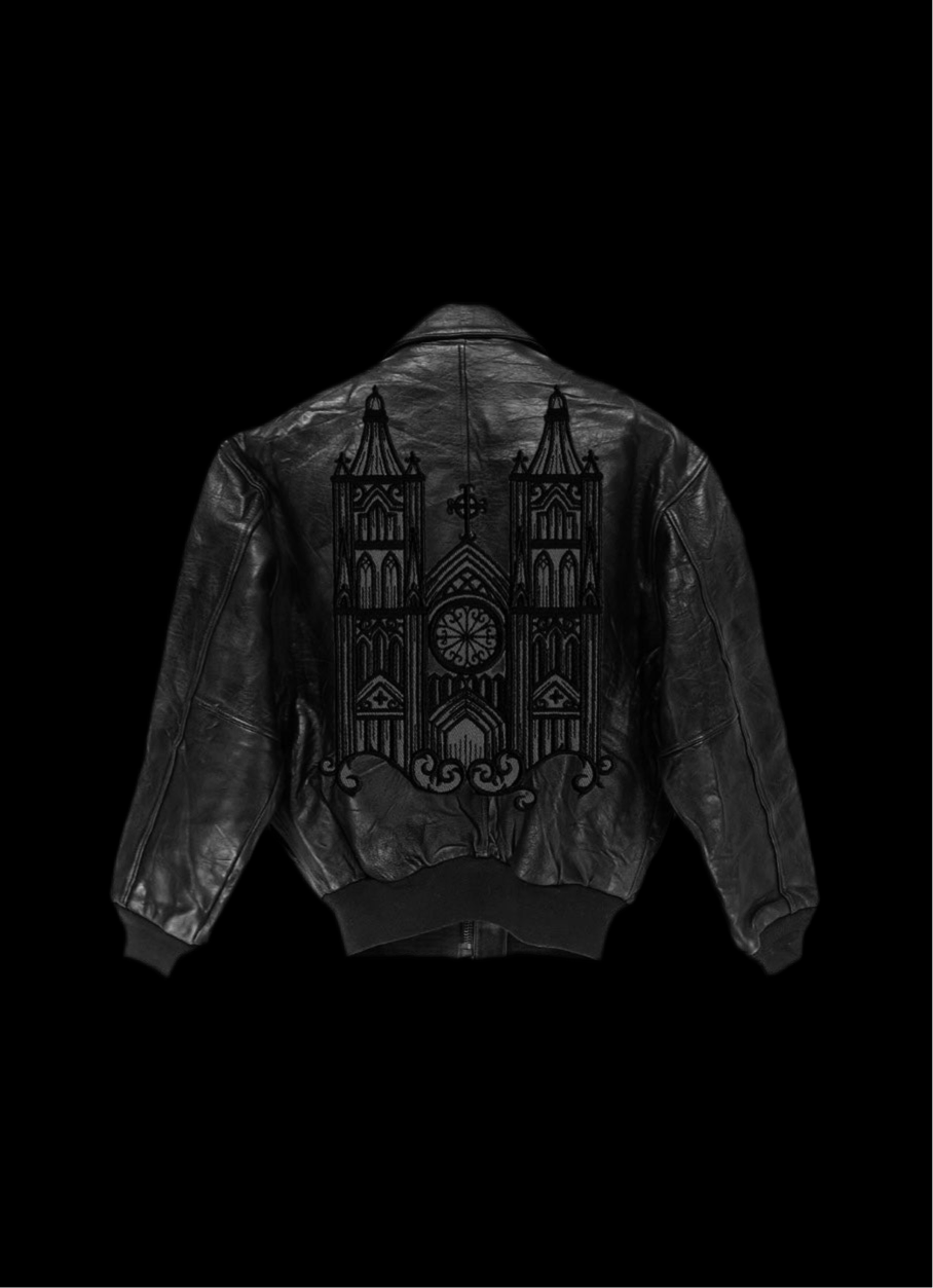 CATHEDRAL Embroidery Leather Jacket - BLACK